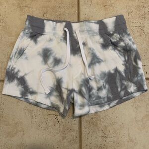 Fashion Nova Grey & White Tie-Dye Cropped Sweatshirt & Shorts Loungewear Set - Size L