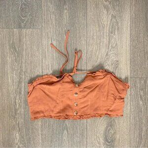 Fashion Nova Heads Up Linen Halter Top Cropped Linen blend Camel Size XL
