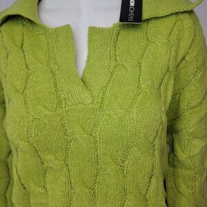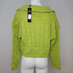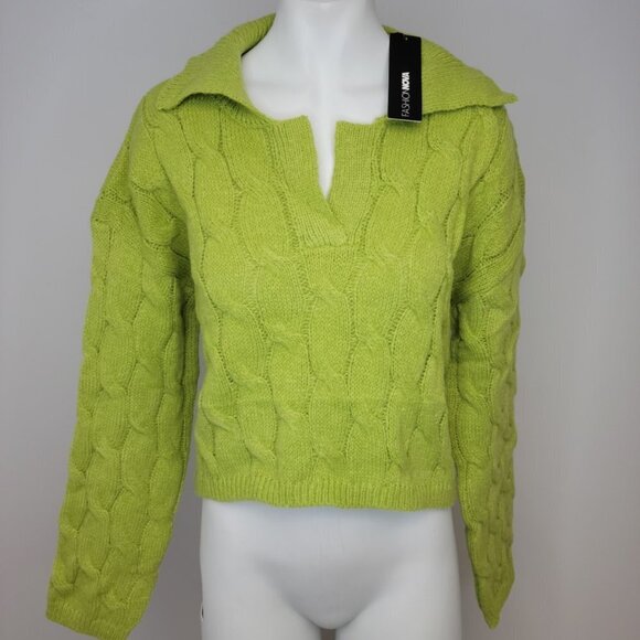 Fashion Nova Knit Green V Neck Collared Sweater Size Large