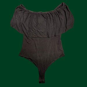 🖤 Fashion Nova Off-Shoulder Ruffle Black Bodysuit (Size M)