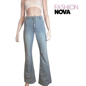 Fashion Nova Pin Me Down Stripe Flare Jeans High Waist Bell Bottom Button Fly