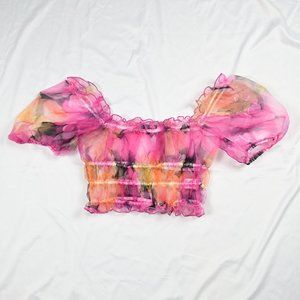 Fashion Nova Puffy sleeves Sheer Crop Top Fuchsia/Combo