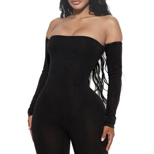 Fashion Nova Rayon Onesie Soothe Off On Shoulder Jumpsuit Leggings Sexy Bodycon