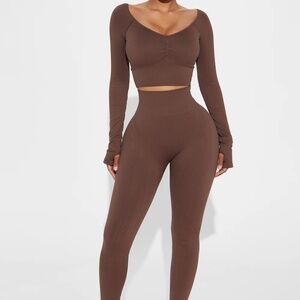 Fashion Nova | Small | Seamless Ribbed 2-Piece Set – Chocolate Brown