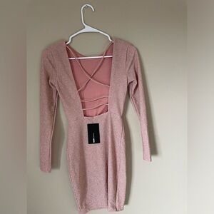 Fashion Nova Sparkly Pink Long Sleeve mini Dress back cut out XS NWT