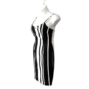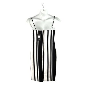 Add a touch of style to your wardrobe with this Fashion Nova bodycon dress. Perfect for a night out or a casual outing, this black and white vertical striped dress is both chic and comfortable. It features thin shoulder straps and a back zipper for a perfect fit. New 🏷️ / 🚭
