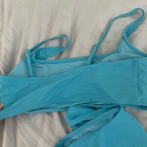 Two piece bathing suit, top is in a size extra large and bottoms are in a 1X
