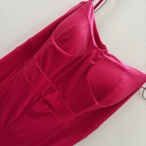Fashion Nova Velvet dress jumpsuit Hot pink Rhinestone Straps Barbiecore party