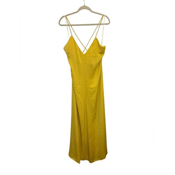 Stand out in this vibrant yellow backless dress. Sleek design with spaghetti straps. Ideal for any event.