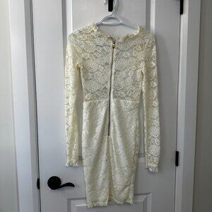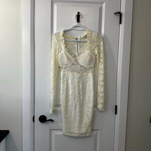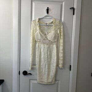 Fashion Nova White Lace Long Sleeve Bodycon Dress – XS