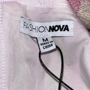 Fashion Nova Women’s Medium Tweed Corset Top Pink/combo Tank Zipper Woven Check