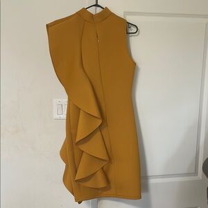Fashion Nova Yellow Asymmetrical Ruffled Sheath Dress