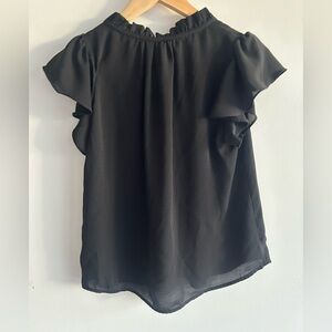 Fashion Nova, size S, black blouse top, keyhole tie up front, ruffles, sheer