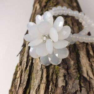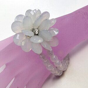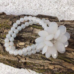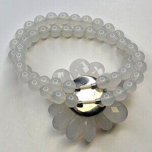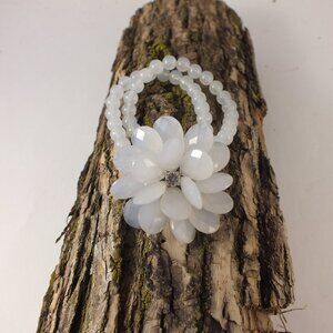 Two loosely layered bracelet with a large floral like centerpiece with a shiny rhinestone in the middle