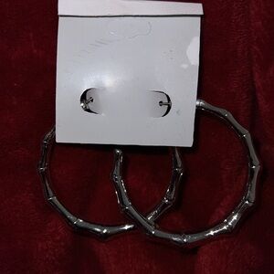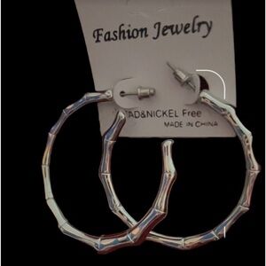 🤍stunning chic timeless style Lightweight Fashion bamboo silver tone hoop earrings new same day shipping from smoke free home