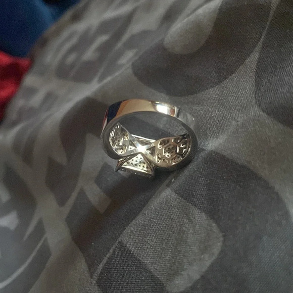 🤍omg! Stunningly 🤍Gorgeous Fashion luxury bling iced out CZ silver tone faux diamonds ring Sz 9 don’t see no stamps might be missing a stone please review carefully before purchase same day shipping from smoke free home