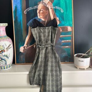 Fashion Nova Black and Tan Checkered Bodycon Dress Small