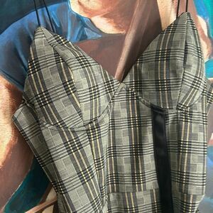 Chic checkered dress with thin straps. Perfect for any occasion.