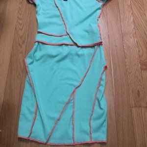 FashionNova Crop Top Skirt Mint Set