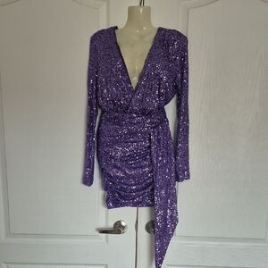 Elegant purple dress with shimmering sequins. Ideal for evening events.