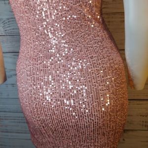 Fashion Nova Start The Show Sequin Dress- Rose Gold
