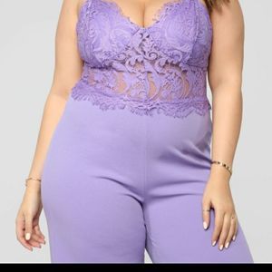 FashionNova NWT (Newwithtag) Lavender Lace Jumpsuit (Plus Size 3X)