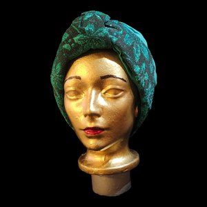 Brand new fashionable toque (female head turbans), green and black, one size fit all, stretchy material. M-L