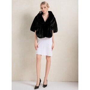 🆕 Fashowlife New Faux Fur Cloak Shawl Women Black Scarf Warm Wrap Stole Shrug