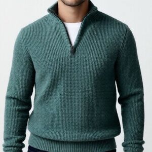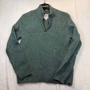 Fat Face !/4 Zip Sweater Mens Size XL Olive Green Chunky Knit Cotton Wool Preppy No Visible Flaws or Stains