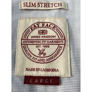 Fat Face Navy Blue Check Shirt Men’s Large Long Sleeve Button Up Slim Stretch