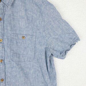 Fat Face Shirt Mens Small Blue Linen Blend Button Up Boho Beach Summer
