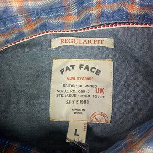 Fat Face Short Sleeve Kettering Check Shirt Men's Large Button Up Blue Indigo