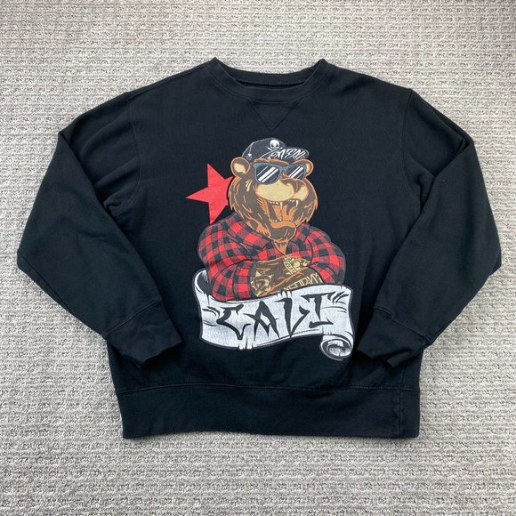Fatal Crew Sweater Women Small S Black Crew Neck Pullover CALI Bear Sweatshirt