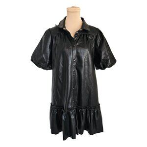 Fate Pleather Puff Sleeve Button Down Dress Sz M