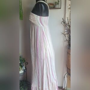 Fate cream & pink striped maxi dress XS