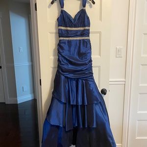 Faust, Prom Long Dress, Blue / Silver Embellishment, Size 38 (US 6) fits small, with crinoline underskirt, 100% Polyester