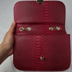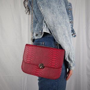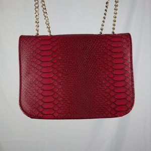 Faux Animal Leather Burgundy Golden Chain Crossbody Bag