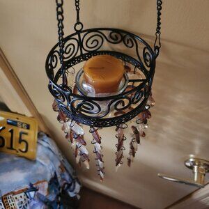 Crystal Chandelier Inspired - beautiful cappuccino coloured Glass Tea Light Pendant Hanging Candle Holder