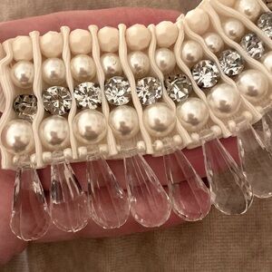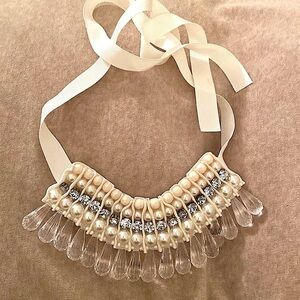 Handmade Large Faux Dangling Pearl & Rhinestones w/ synthetic crystals Statement Necklace. Very hard to come by. 🤍