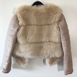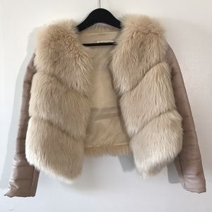 Faux Fox Fur Jacket Detachable Sleeves Cream S