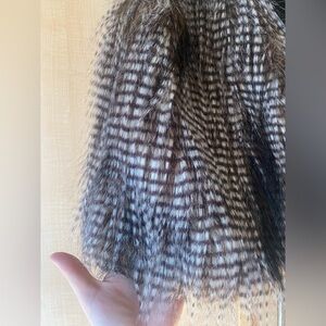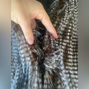 Step into elevated fall fashion with this luxe faux fur vest, originally carried by The Bay—a beloved staple in Canadian retail history. Featuring a rich feathered pattern in brown, black, and white, this piece offers standout texture and style. Fully lined with a comfortable inner/shell blend and designed for dry cleaning, it’s both functional and fashionable.