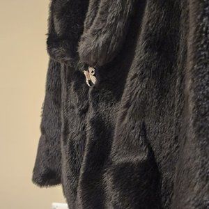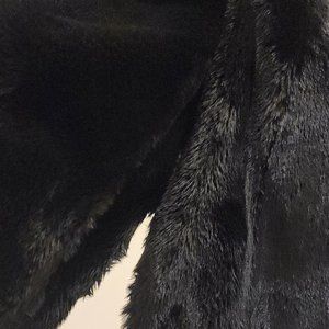 This is a very unique jacket / cape from quality faux fur in excellent condition. This elegant cape has a built in clasp bow made from.Swarovski Crystals.