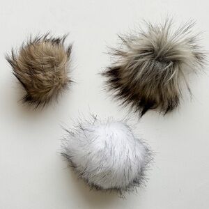 Faux Fur Poms - Crafting Snap Off - Various Size/Color - 3 Pieces