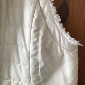 Faux fur, side pockets, front zipper closure, white off color, size M, excellent condition !