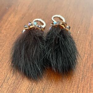 Elegant faux fur earrings with sparkling crystals. Perfect for adding a touch of glamour.