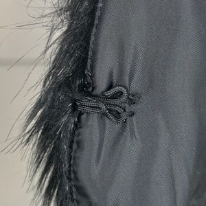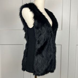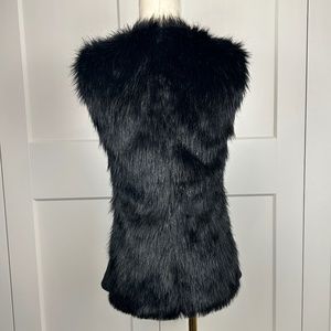 Black faux fur vest, with hook clasps, side panels have some stretch and belt loops. Size S