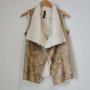 Faux Fur Vest Sherpa Tan Cream Open Front Design Lab Lord & Taylor Size XS