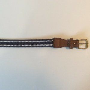 One faux leather and woven cloth belt