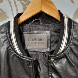 Faux Leather Bomber Jacket Black Ci Sono Size Medium