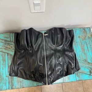 Faux Leather Corset Sexy Clubwear Bustier Hot Lingerie Zipper Front